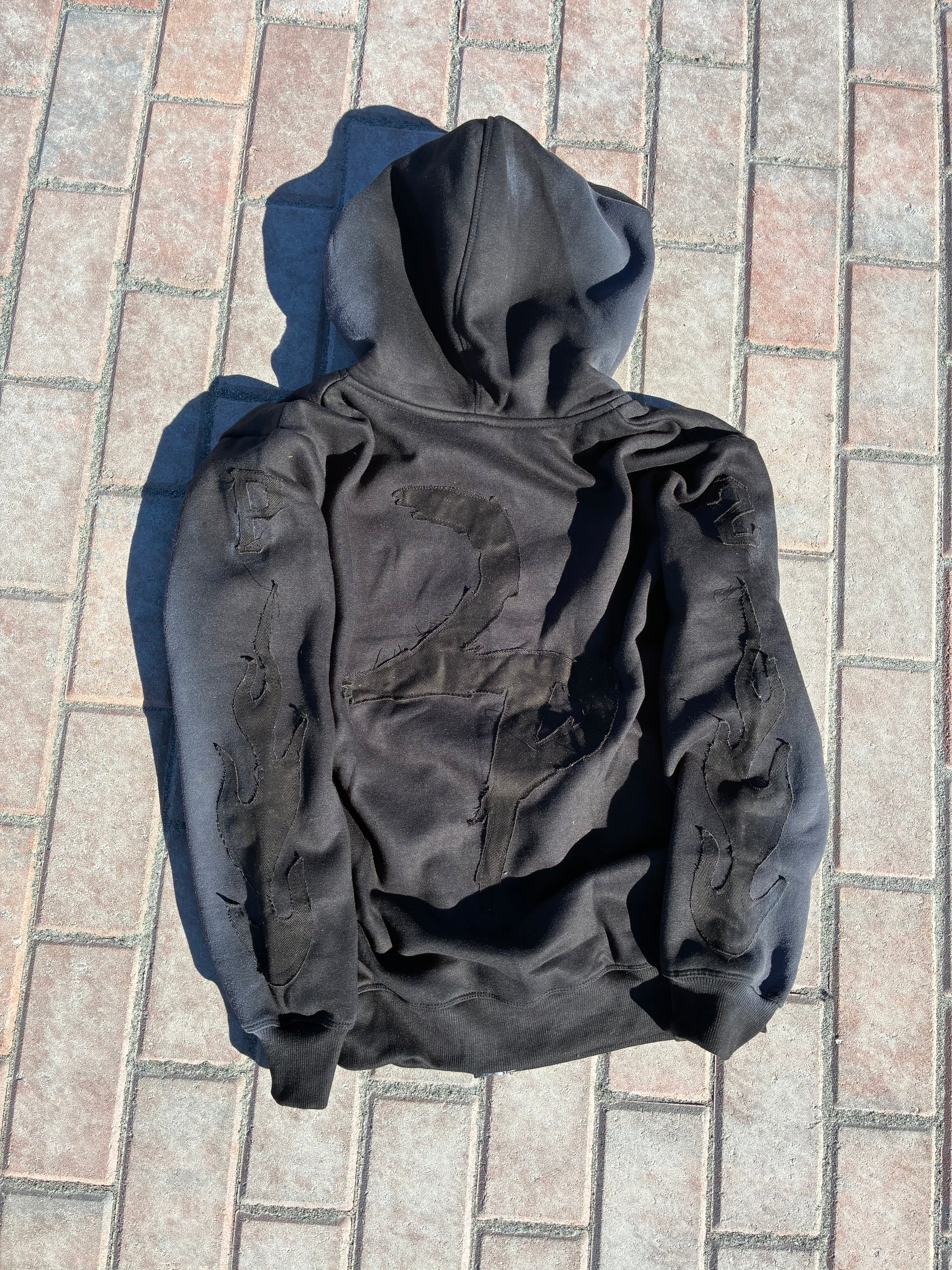 Acid washed black, Distressed, 100% cotton, wash in cold water